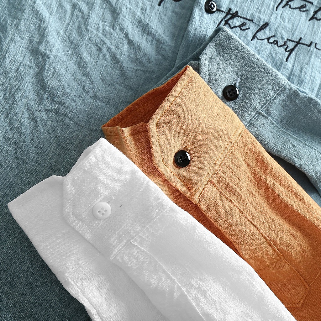Giới thiệu Áo sơ mi nam vải đũi kiểu dáng thời trang thêu chữ cực phẩm