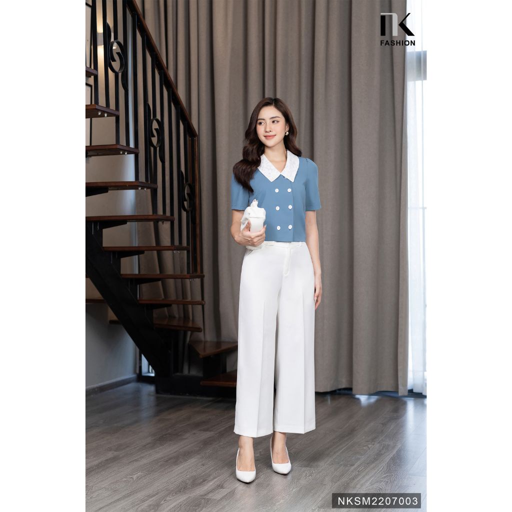 Giới thiệu Áo Sơ Mi Ngắn Tay Công Sở Nữ NK Fashion Phối Cổ Ren Trắng Giao 2 Hàng Cúc Thanh Lịch NKSM2207003