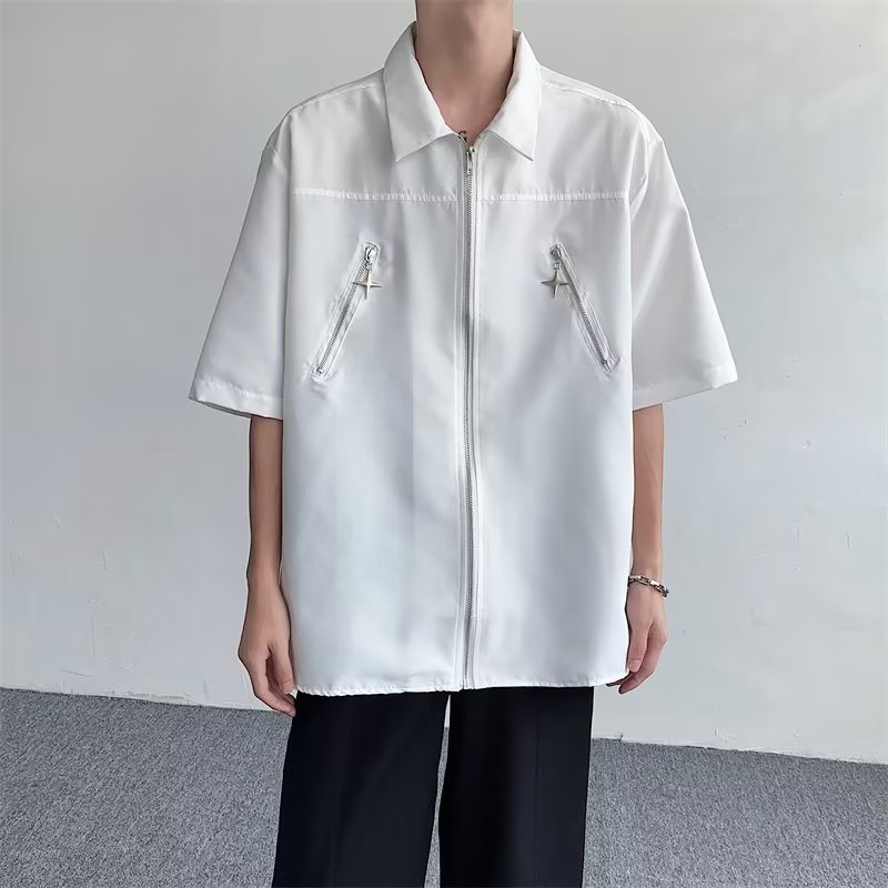 Giới thiệu Áo Sơ Mi Ngắn Tay Phối Khóa Kéo Thời Trang Xu Hướng Mỹ Cho Nam