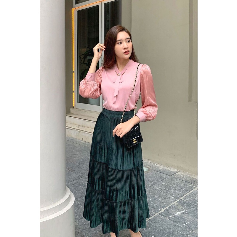 Áo Sơ Mi LAMER Cổ Nơ Tay Phối L61B21Q025Giá TOWER