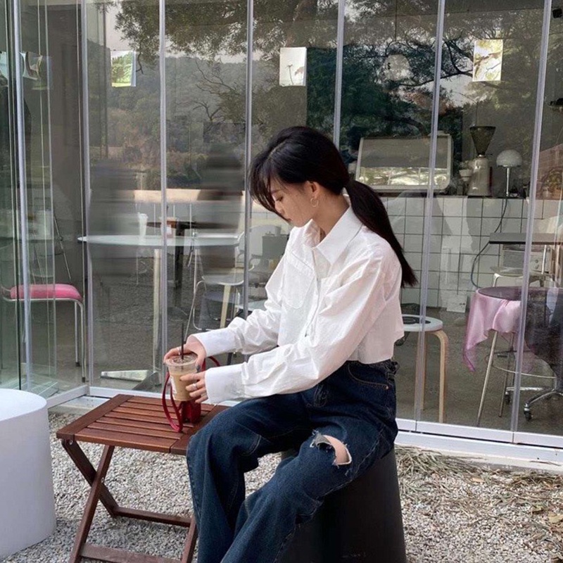 Áo Sơ Mi Nữ Croptop Thiết Kế Dài Tay Form Rộng Phối Túi Ngực Phong Cách Ulzzang Thời Trang Sugal SO MI NU 029V3