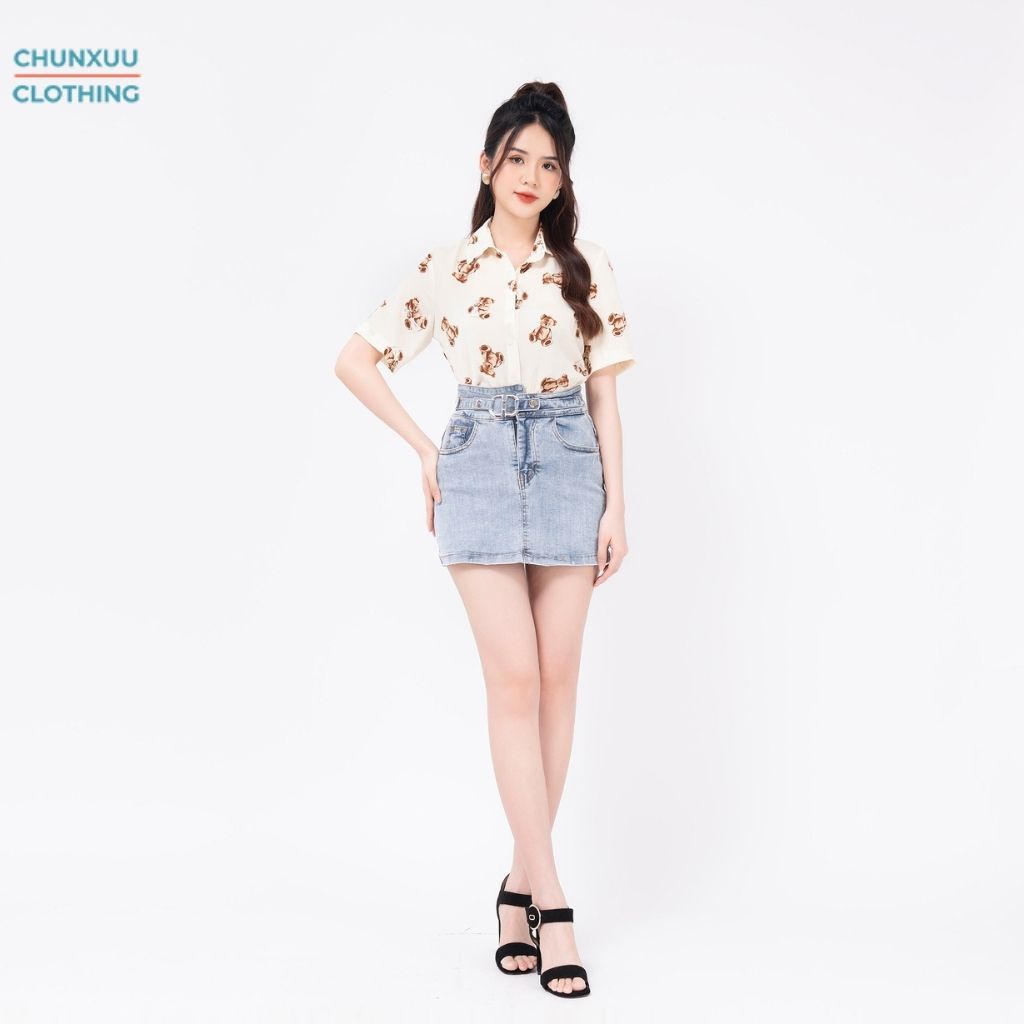 Giới thiệu Áo sơ mi nữ kiểu cộc tay Chunxuu thiết kế kiểu dáng basic họa tiết gấu bear thời trang - SK04