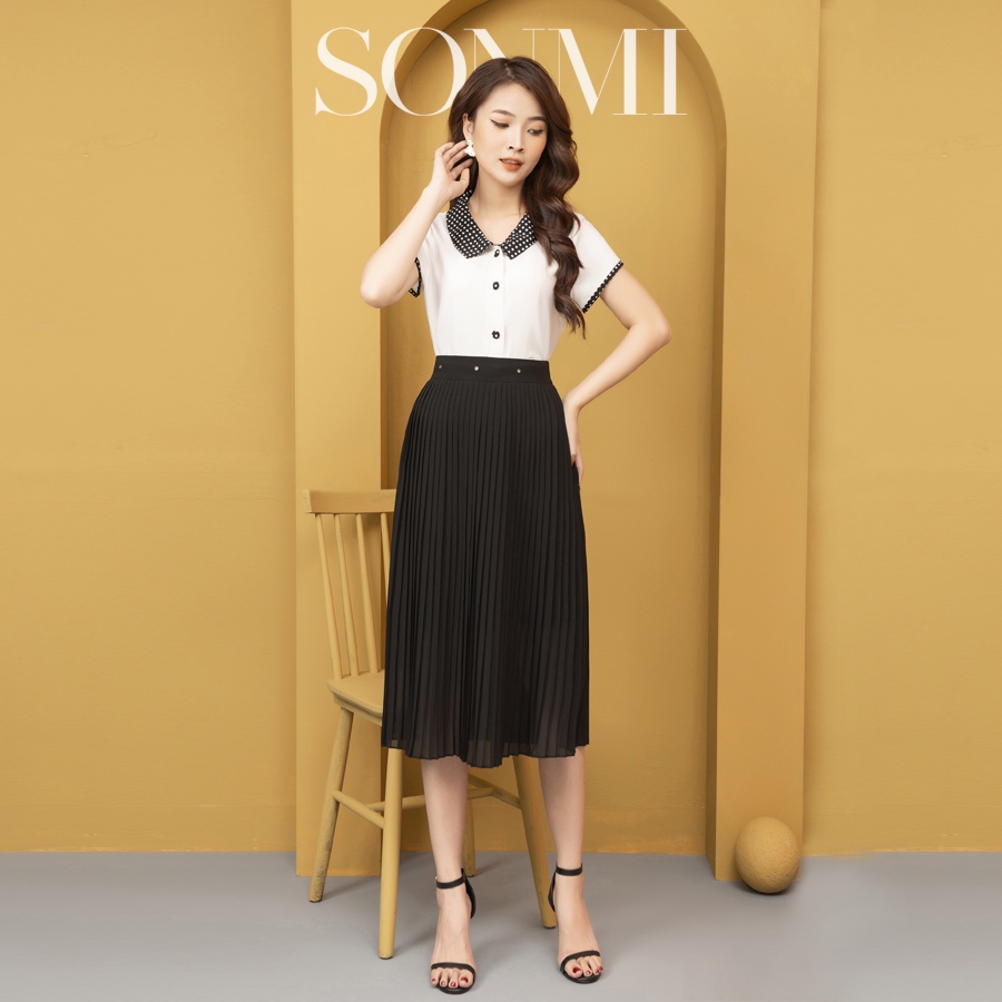 Giới thiệu Áo Sơ Mi Nữ Kiểu Công Sở SONMI Hàn Quốc Cao Cấp Tay Ngắn Cổ V Họa Tiết Chấm Bi NATALIA QUINN