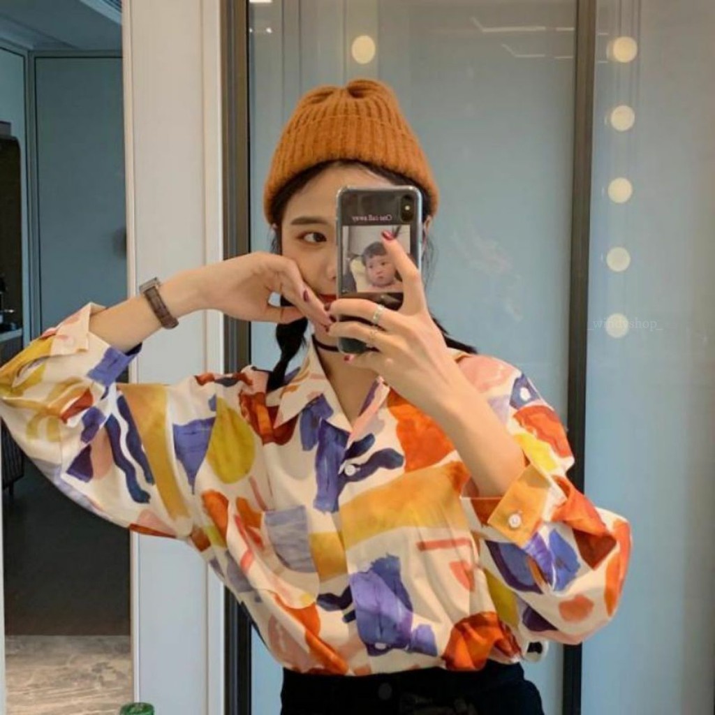Giới thiệu Áo Sơ Mi Nữ Tay Dài Form Rộng In Họa Tiết Màu Sặc Sỡ