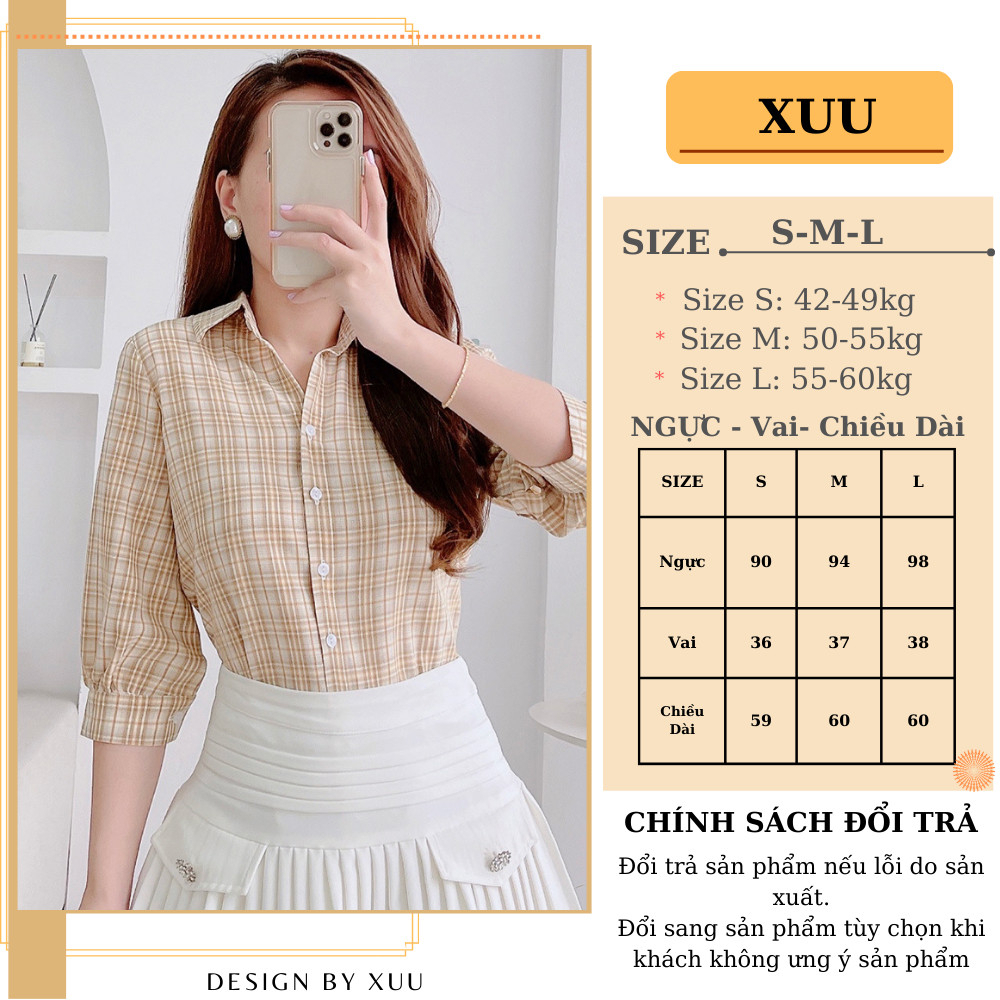 Giới thiệu Áo sơ mi nữ tay lửng công sở CHUNXUU, vải kate cao cấp thiết kế kẻ caro phối tay bồng nhẹ thanh lịch, trẻ trung - Xu02