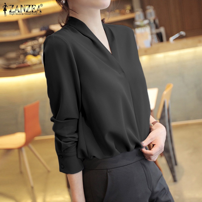 Giới thiệu Áo sơ mi nữ ZANZEA tay dài cổ chữ V màu trơn thời trang