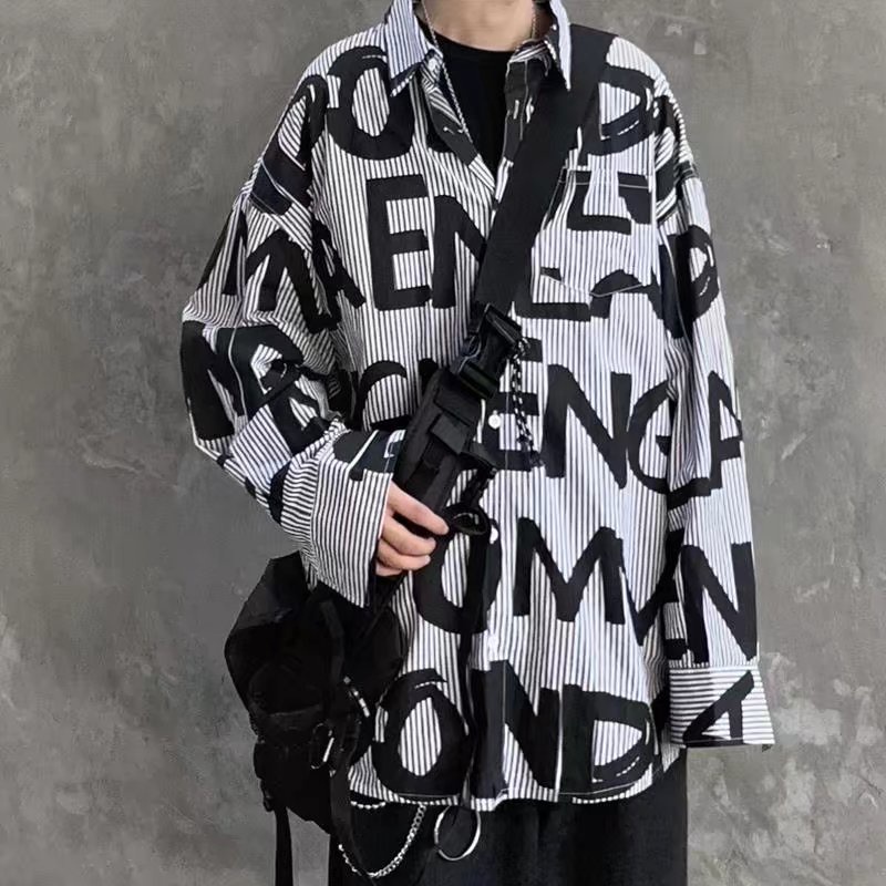 Giới thiệu Áo Sơ Mi Tay Dài Họa Tiết Kẻ Sọc In Chữ Tiếng Anh Phong Cách Nhật Bản Thời Trang Mùa Thu Cho Nam