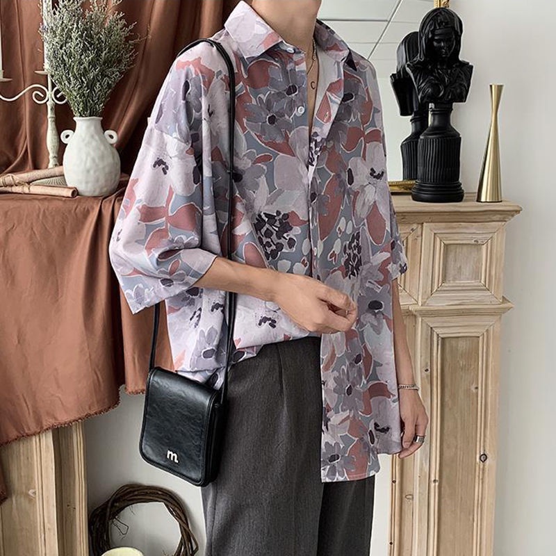 Giới thiệu Áo Sơ Mi Tay Lỡ In Họa Tiết Hoa Toàn Diện Phong Cách Harajuku Hàn Quốc Thời Trang Cho Nam