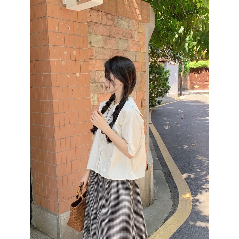 Giới thiệu Áo Sơ Mi Tay Ngắn Cổ Búp Bê Màu Trơn Dễ Thương Thời Trang Mùa Hè 2023 Phong Cách Nhật Bản Cho Nữ