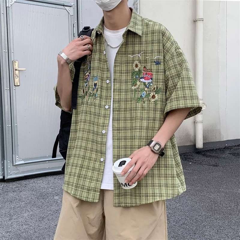 Giới thiệu Áo Sơ Mi Tay Ngắn Cổ Vuông Họa Tiết Hoa Cúc Thời Trang Phong Cách Hàn Quốc Cho Nam