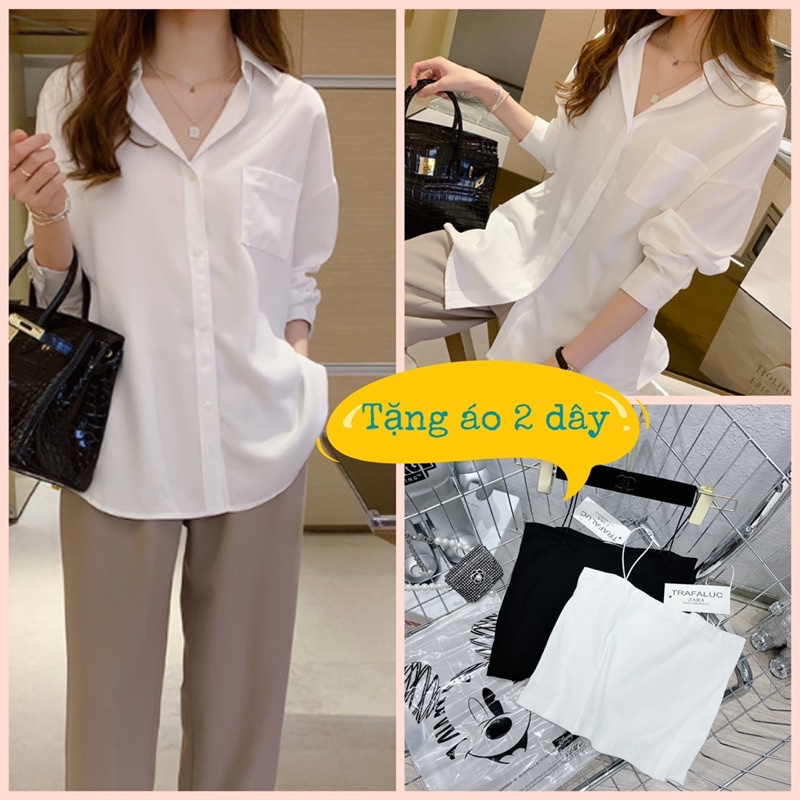 Áo sơ mi trắng bassic có túi ngực đi học đi làm dáng rộng 40-65kg chất liệu : Vải cotton pha von mềm size : freesize 40-65kg sơ mi trắng đi học đi làm phối quần tây cực đep #áo sơ mi # aosomi #aotrang #aohocsinh Việt Nam