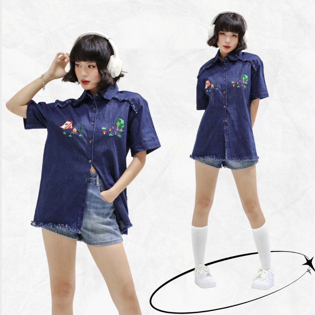 Giới thiệu Áo sơ mi VM Shop nữ tay ngắn thêu họa tiết lai tua thời trang Ulzzang VL03 SMU00179