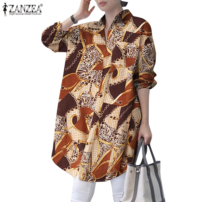 Giới thiệu Áo sơ mi ZANZEA tay dài cổ bẻ in họa tiết thời trang cổ điển phong cách cho nữ