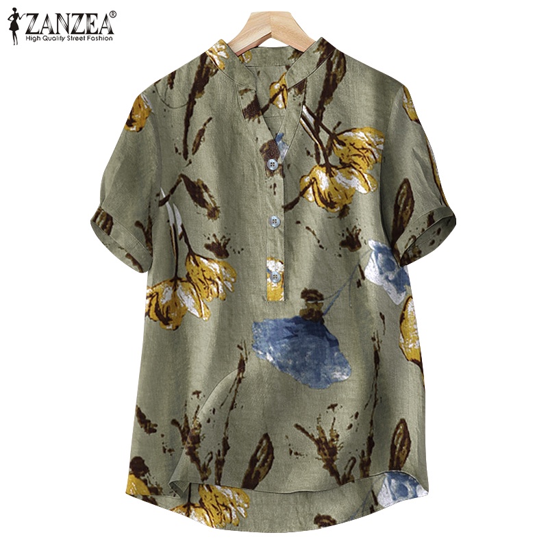Giới thiệu Áo sơ mi Zanzea tay ngắn cổ chữ V in họa tiết phong cách vintage dành cho nữ