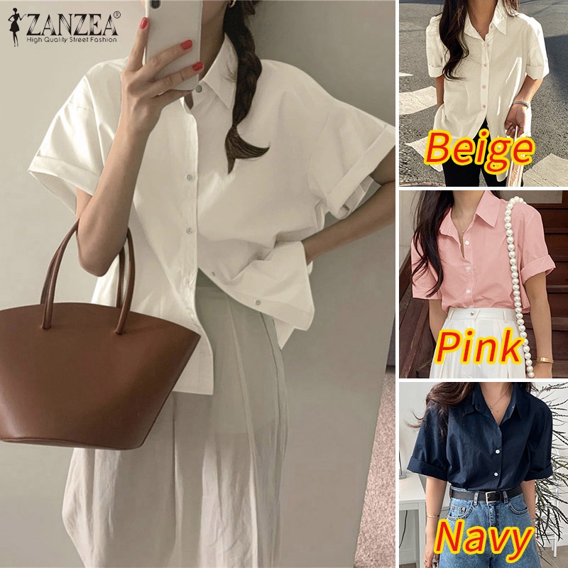 Giới thiệu Áo sơ mi ZANZEA tay ngắn màu trơn cổ bẻ thời trang dành cho nữ