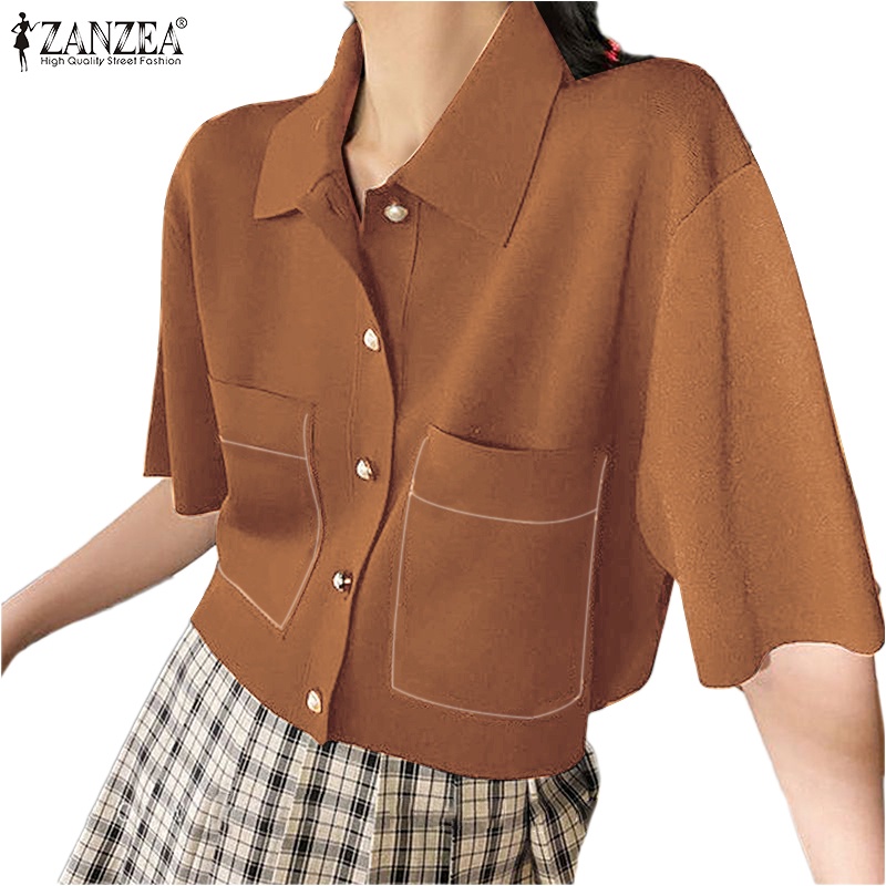 Giới thiệu Áo sơ mi ZANZEA thiết kế ngắn tay có túi thời trang nữ tính