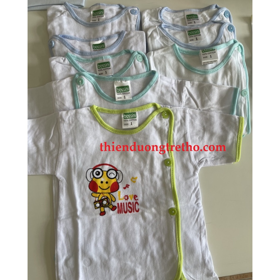 Giới thiệu Áo sơ sinh Ngắn tay màu trắng, cúc lệch, viền màu Bosini cho bé từ sơ sinh đến 9kg