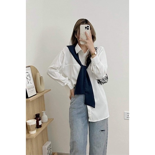 🍀Áo sơmi dài tay phối khăn phong cách Hàn Quốc🍀