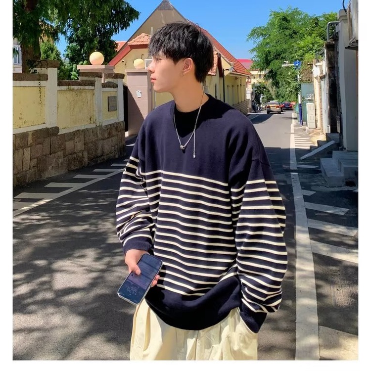 Giới thiệu Áo Sweater Dáng Rộng Cổ Tròn Kẻ Sọc Màu Tương Phản Thời Trang Cho Nam Giới Có Size Lớn 8XL