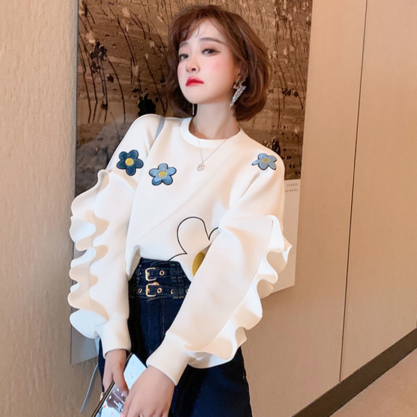Giới thiệu Áo Sweater Dáng Rộng Phối Bèo Xinh Xắn Theo Phong Cách Hàn Quốc tao bao