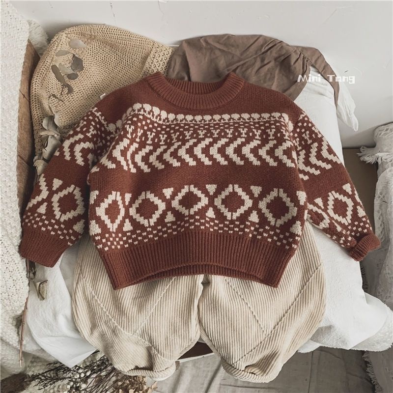 Giới thiệu Áo Sweater Dệt Kim Chui Đầu Cổ Thuyền Kiểu Vintage Thời Trang Thu Đông Cho Bé