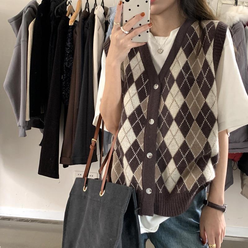 Giới thiệu Áo Sweater Dệt Kim Cổ Chữ V Dáng Rộng Phong Cách Preppy Thời Trang Mùa Thu Hàng Mới Năm 2021