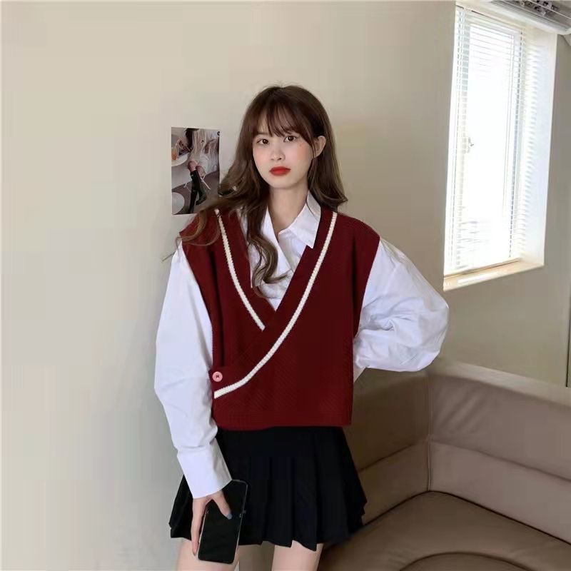 Giới thiệu Áo sweater Dệt Kim Cổ Chữ V Dáng Rộng Phong Cách Hàn Quốc Cho Nữ áo vest nữ NZ-MJ-08