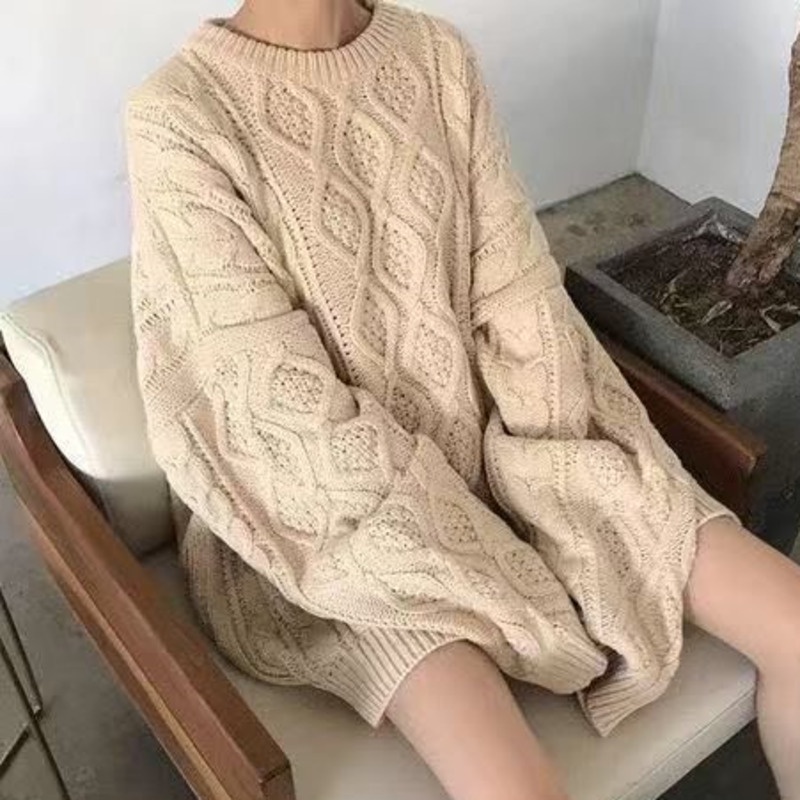 Giới thiệu Áo Sweater Dệt Kim Tay Dài Dáng Rộng Cổ Tròn In Họa Tiết Phong Cách Hàn Quốc Thời Trang Mùa Thu Cho Nữ