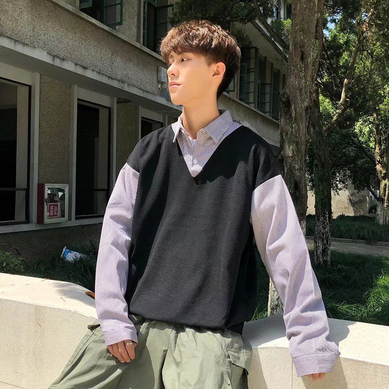 Giới thiệu Áo Sweater Giả Hai Lớp Phong Cách Hong Kong Thời Trang Mùa Thu Cho Nam