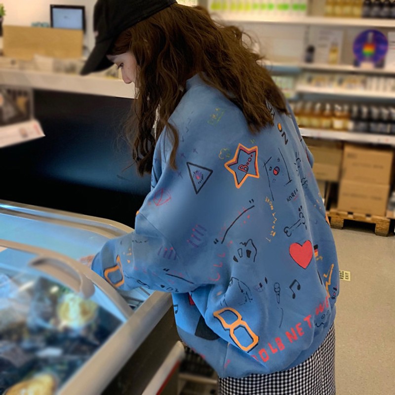 Giới thiệu Áo sweater họa tiết graffiti form rộng thời trang xuân thu Hàn Quốc trẻ trung cho nữ