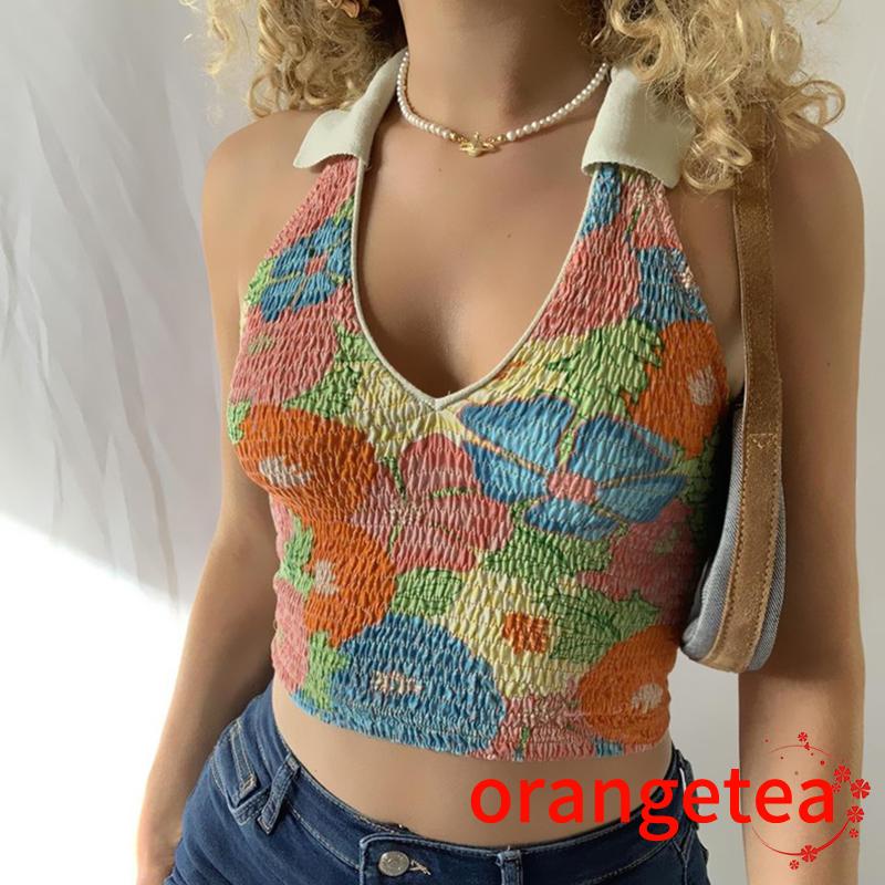 Thiết KẾ: Áo tank top nữ mùa hè sử dụng in họa tiết sơn, cổ chữ v, cổ lật xuống, cổ dây, không tay, rốn lộ ra, hở lưng, thiết kế ôm vừa vặn, sang trọng và phong cách.