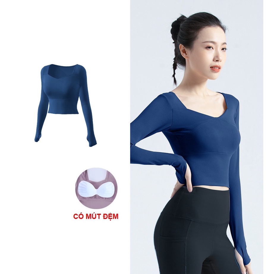 Giới thiệu Áo tập gym nữ có mút đệm, áo croptop xỏ ngón ôm body, tôn dáng