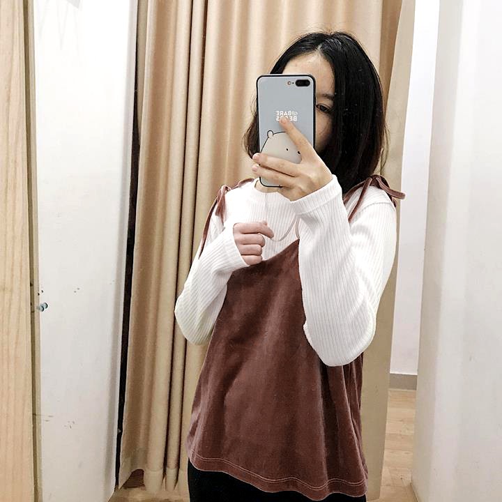 #áo2dây #áodây #summer #mùahè #áonữ #trơn #đen #2dâyphối #taydài #dễthương #nhung #lenmỏng