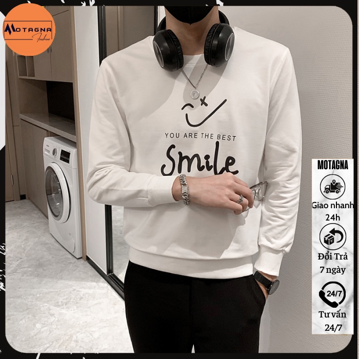 Giới thiệu Áo thu đông nam tay dài đẹp chất cotton nỉ cổ tròn có bo tay bụng in Smile mã NZ696