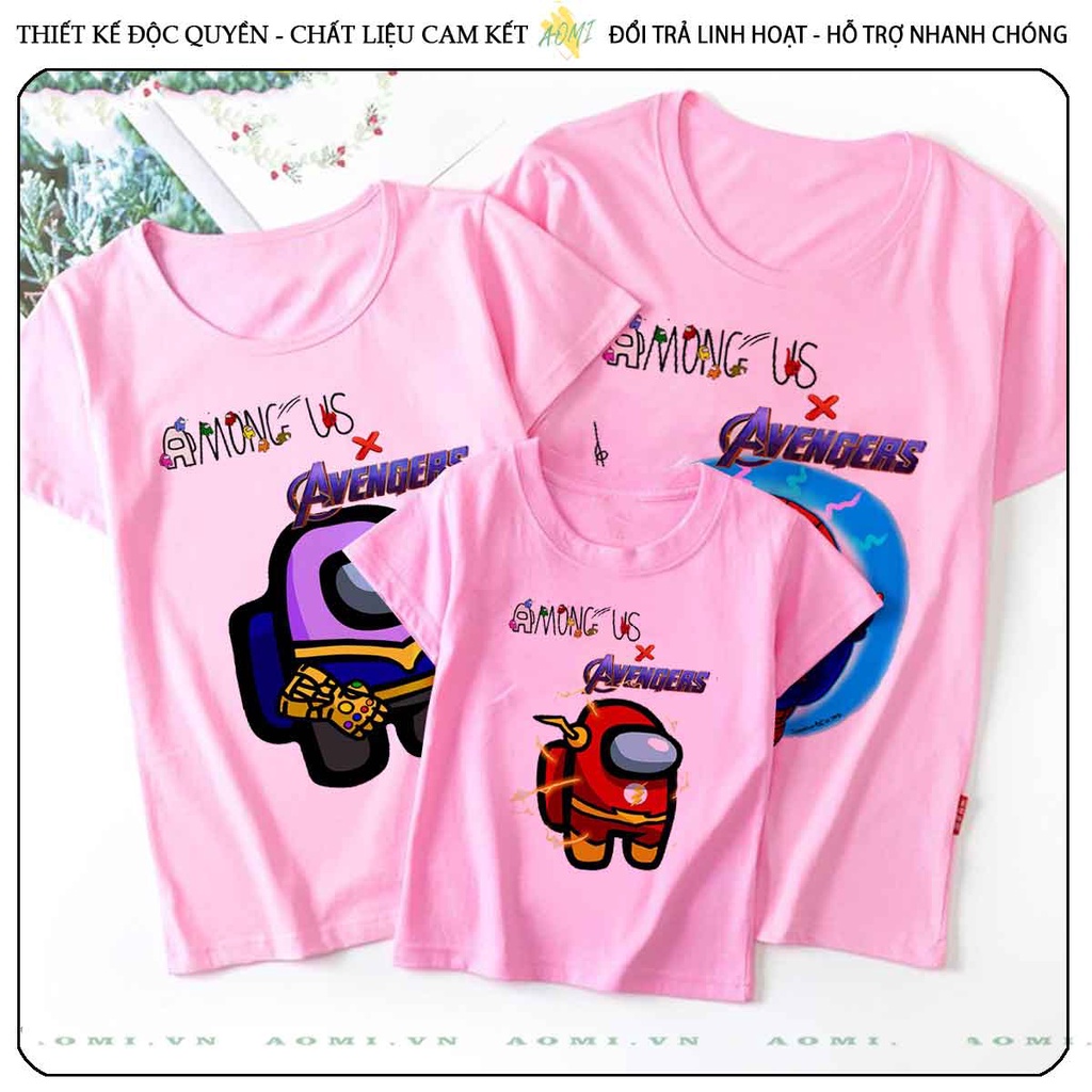 Giới thiệu ÁO THUN among us avengers UNISEX PHÔNG HỒNG TAY NGẮN NAM NỮ GIA ĐÌNH CẶP ĐÔI SIZE TRẺ EM BÉ TRAI GÁI AOMIVN