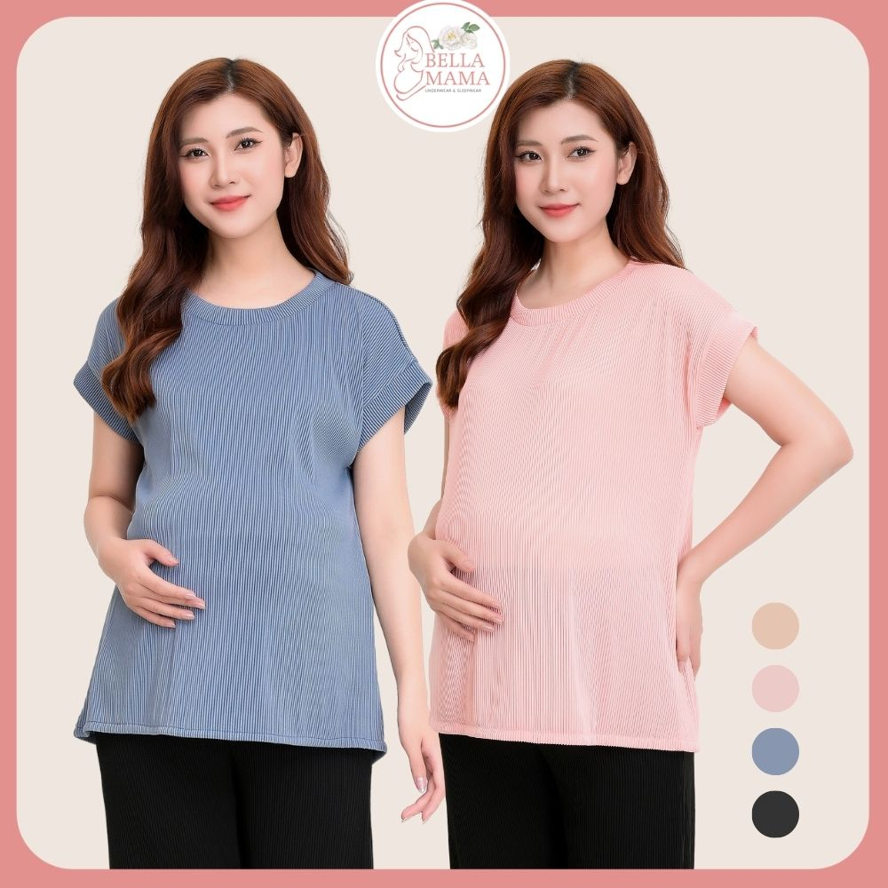 Giới thiệu Áo thun bầu mùa hè Áo bầu cộc tay thiết kế chất liệu ly tăm trẻ trung mềm mại cho mẹ bầu Bella Mama AT03