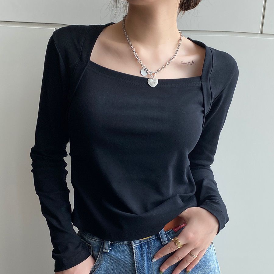 Giới thiệu Áo thun BH cotton tay dài cổ vuông dáng ôm thời trang thu đông 2022 cho nữ