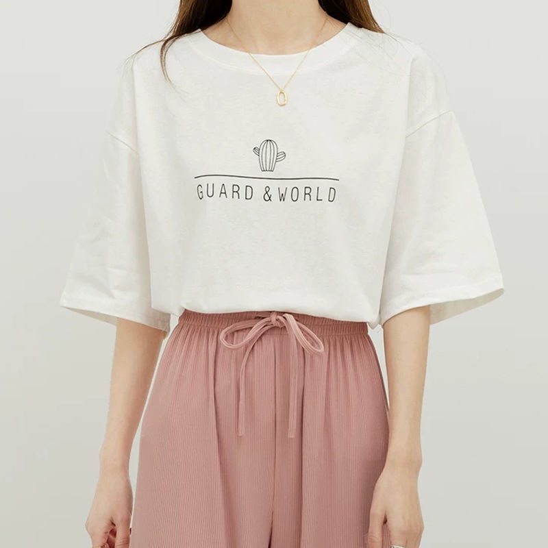 Giới thiệu Áo Thun BH Nữ Ngắn Tay Cổ Tròn Dáng Rộng In Chữ Kiểu Hàn Quốc