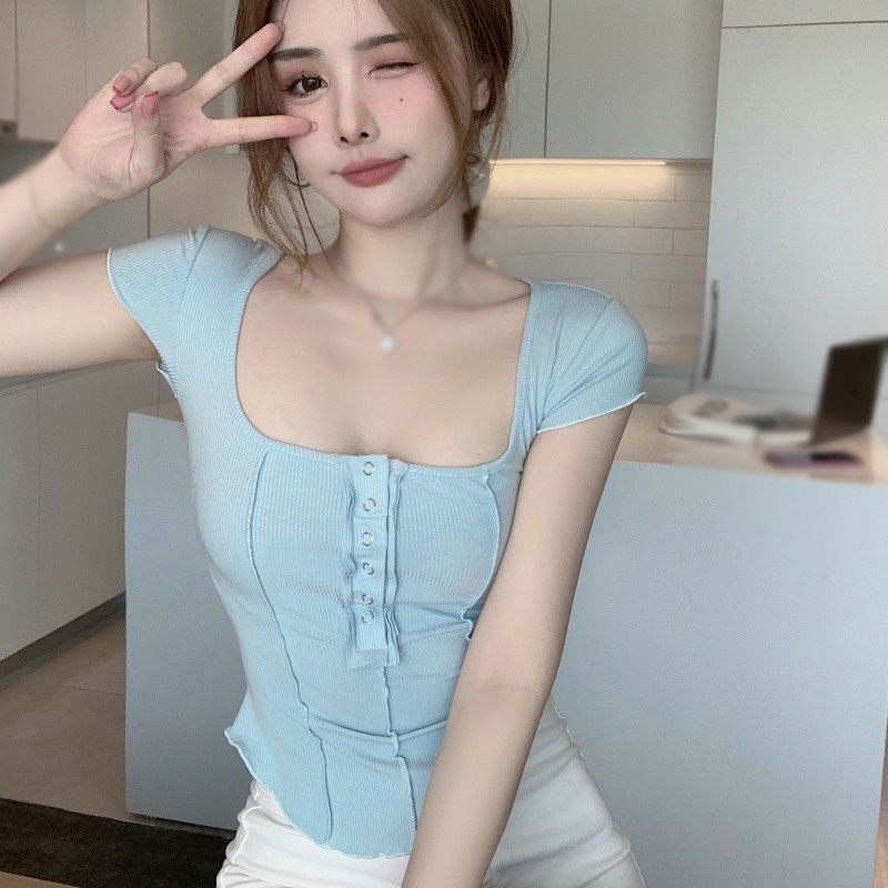 Đặc điểm: Chất liệu: Polyester Chiều dài áo: Ngắn Đầu chỉ may: dẫn đường may Loại vải: vải mịn Tay áo dài (cm): ngắn Trang trí: Nút Kiểu họa tiết: trơn màu Phong cách quyến rũ: Chung Họa tiết: trơn màu Phong cách: Sexy / Hộp đêm Mô tả kích thước: Kích thước bình thường Nguồn sản phẩm: Trung Quốc Tuổi: 18-35 Dành cho mùa: mùa hè Kiểu áo: Cổ điển Thân áo: ôm Loại sản phẩm: Áo Loại áo: Áo phông Dành cho: Phụ nữ Màu sắc: 3 màu Vải: Polyester Các Đặc điểm: Phong cách mùa xuân và mùa hè, cổ chữ U, thiết kế, eo nhỏ, phong cách thuần khiết, áo phông, nữ, tay ngắn Kích thước: S-L Các dịp sử dụng: đi làm, hẹn hò, đi học, dự tiệc, du lịch, mua sắm
