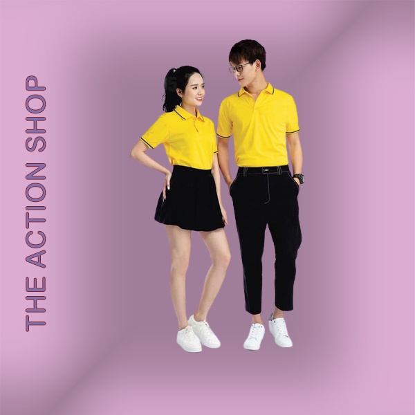 Giới thiệu Áo thun có cổ bẻ nam nữ cọc tay trơn vải cá sấu mè mát mẻ màu vàng Bin Action