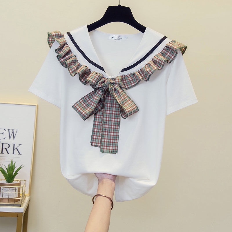 Giới thiệu Áo Thun Cotton Nguyên Chất Cổ Hải Quân Tay Ngắn Cỡ Vừa Phong Cách Hàn Quốc Thời Trang Mùa Hè Cho Bé Gái