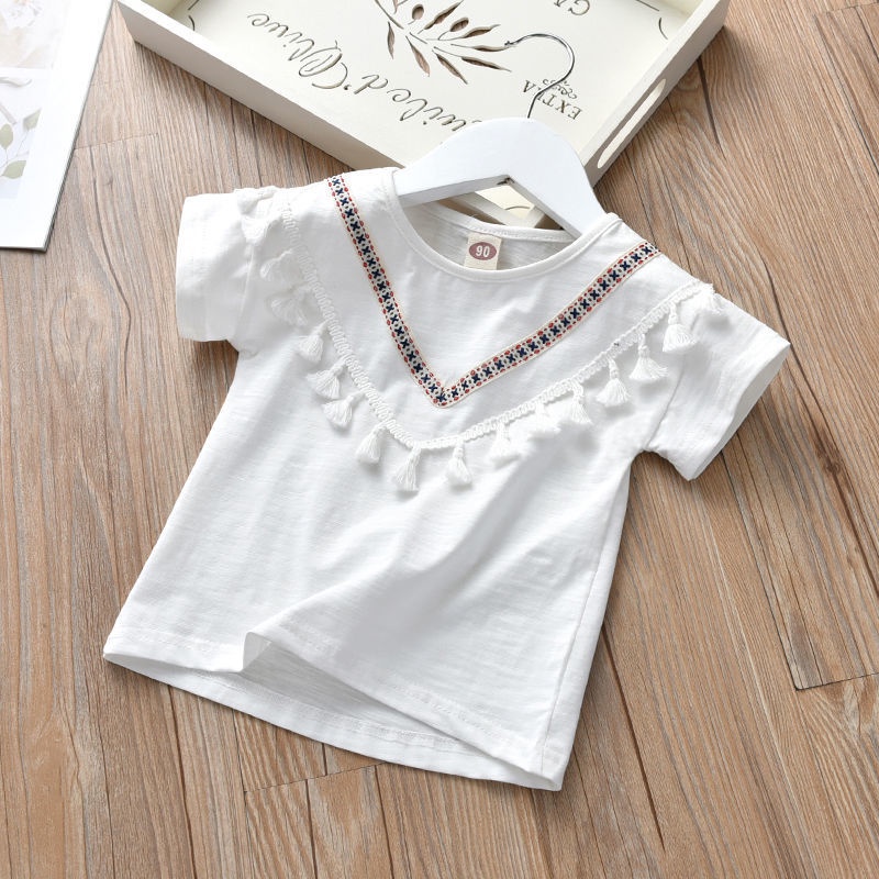 Giới thiệu Áo Thun Cotton Tay Ngắn Phối Tua Rua Phong Cách Hàn Quốc Thời Trang Mùa Hè Mới 2023 Cho Bé Gái
