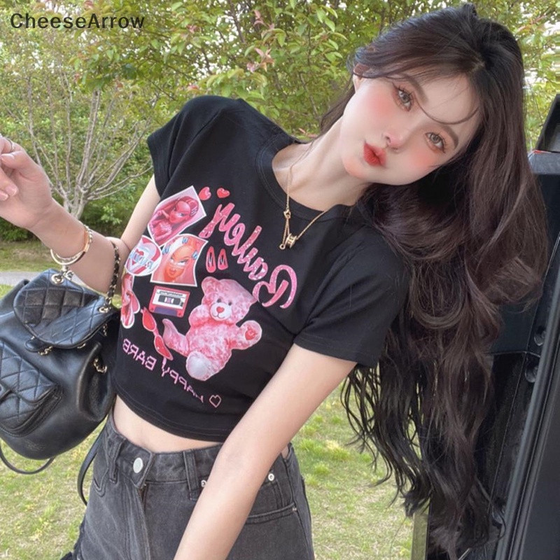 Giới thiệu Áo Thun Crop Top Tay Ngắn Cổ Tròn In Hình Gấu Hoạt Hình Thời Trang Mùa Hè Dành Cho Nữ