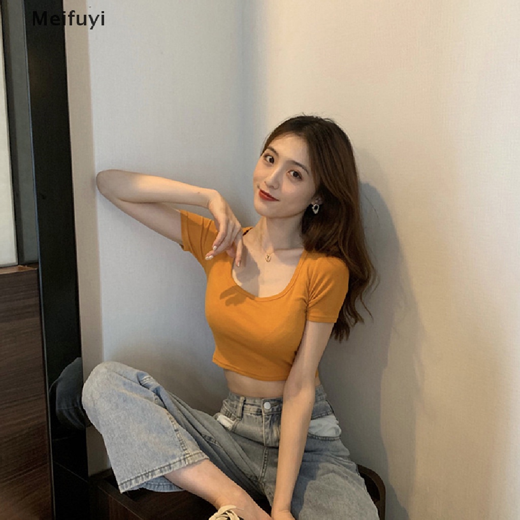 Giới thiệu Áo Thun Crop Top Tay Ngắn Cổ Vuông Màu Sắc Đơn Giản Thời Trang Mùa Hè Dành Cho Nữ