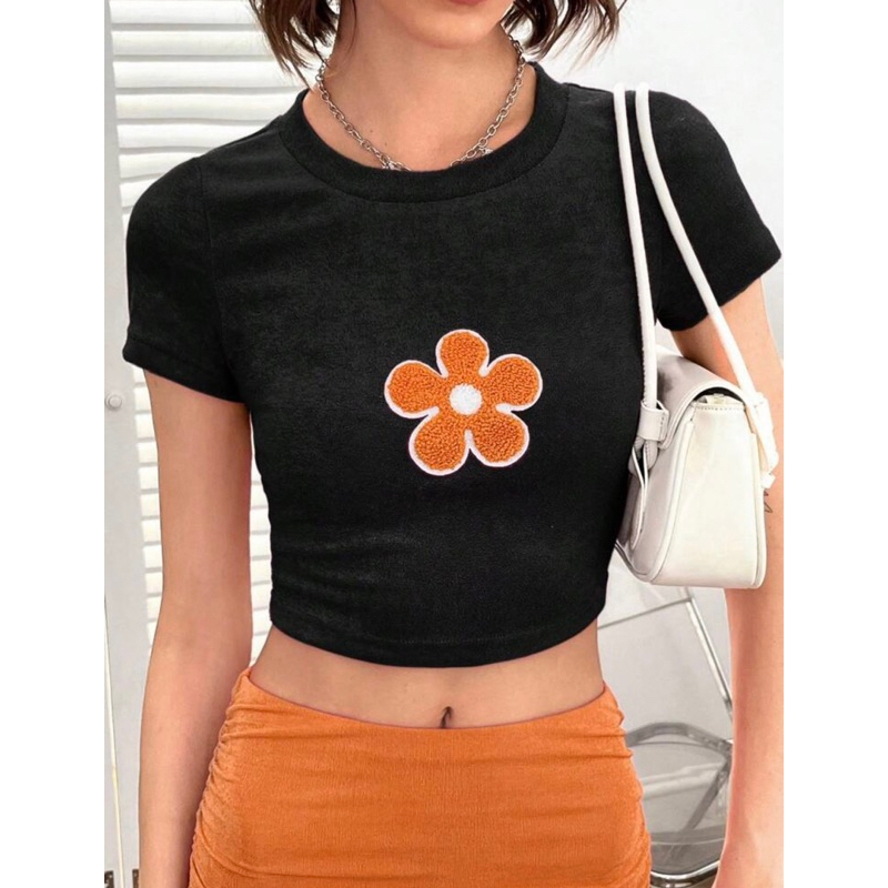Giới thiệu Áo thun croptop đính hoa cam - Quần short jean trắng gấu tua rua (Hàng auth)