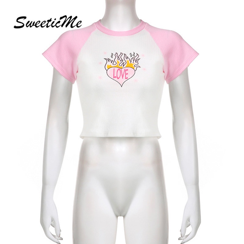 Giới thiệu Áo Thun Croptop Tay Ngắn Cổ Tròn Dáng Ôm In Chữ Phối Màu Tương Phản Thời Trang 2023 Cho Nữ
