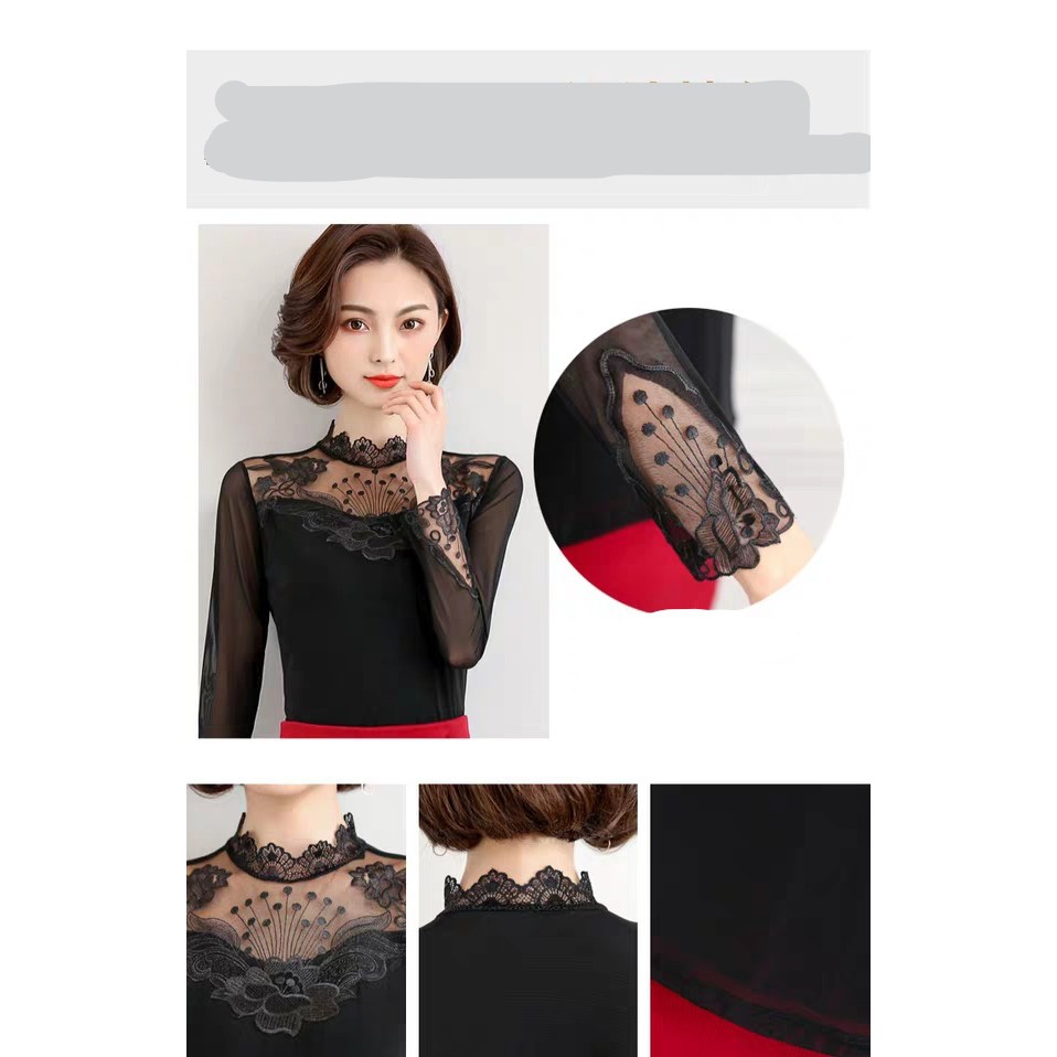- Áo kiểu phối ren bằng chất liệu thun lưới mềm kết hợp với ren tinh tế đính đá, áo thun lưới đính đá với kiểu thiết kế ôm giúp tôn dáng body và thon gọn vòng eo với chất liệu sợi bông kết hợp với viscose tạo nên chất liệu thoáng mát và mượt mà với làn da