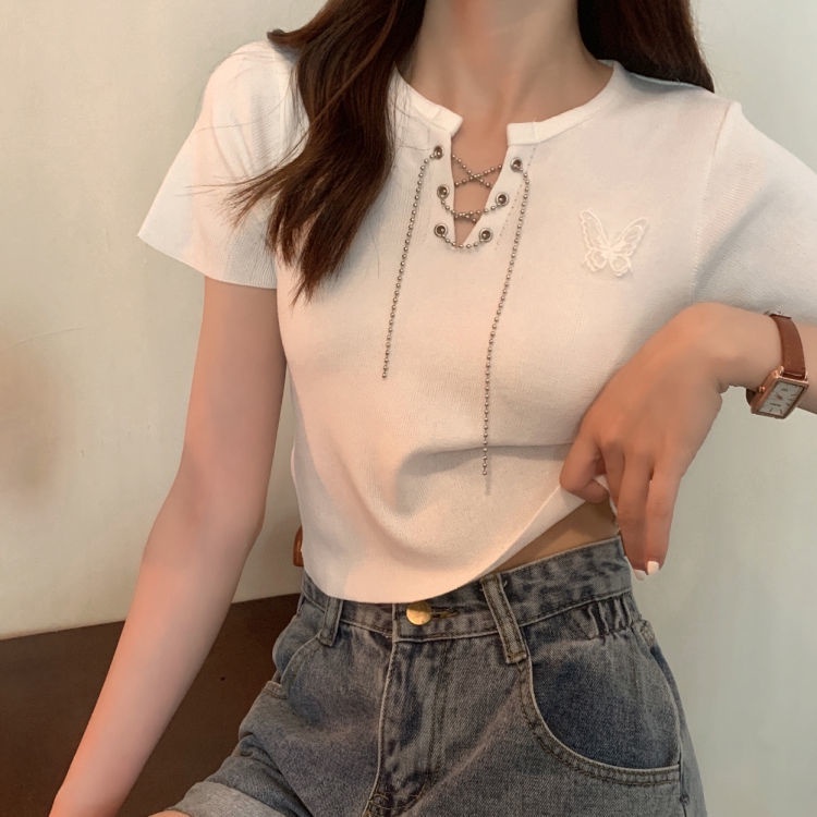 Giới thiệu Áo Thun Đen Tay Ngắn Cổ Chữ v Phong Cách Hàn Quốc Hợp Xu Hướng Áo phông Nữ NZ-TX-114