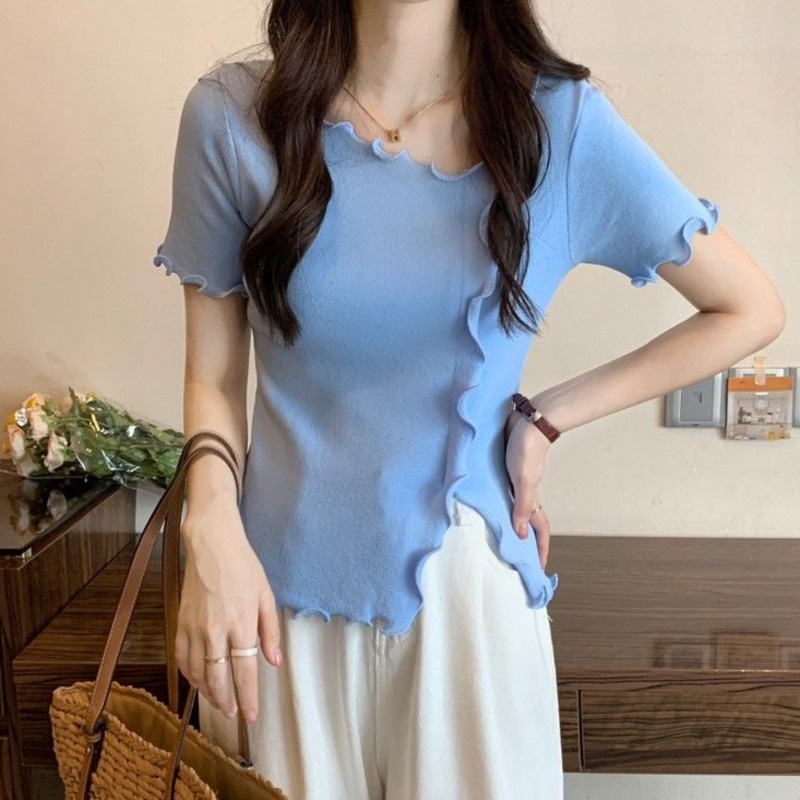Giới thiệu Áo Thun Dệt Kim Tay Ngắn Thiết Kế Trẻ Trung Hợp Thời Trang 175287 Áo Thun Tay Ngắn Dáng Ôm Dễ Phối Đồ Cho Nữ