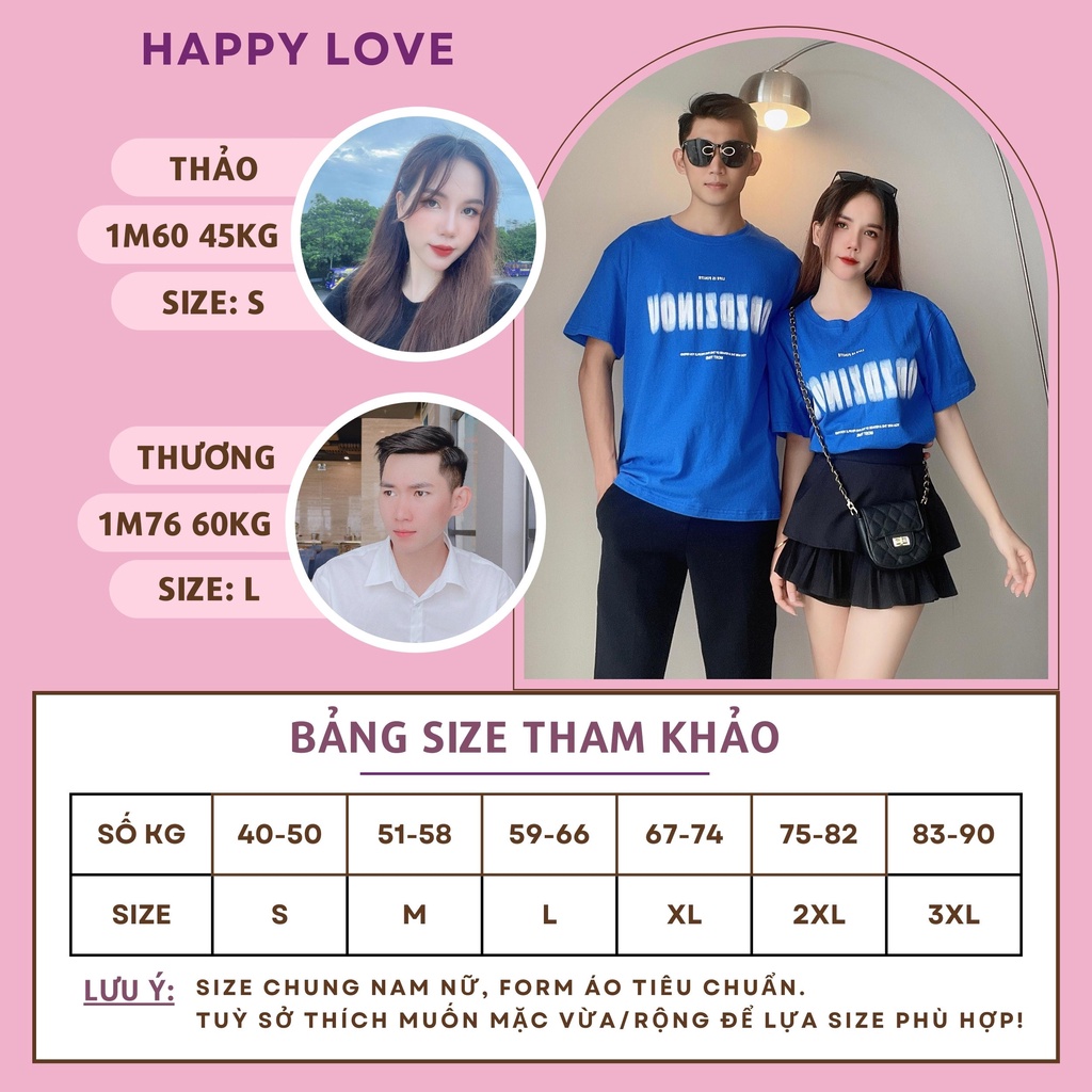 Giới thiệu Áo thun đôi nam nữ form rộng màu xanh HAPPYLOVE áo phông đôi in chữ hàng Quảng Châu H48